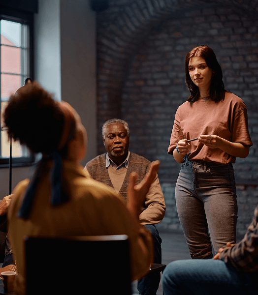Participants meet 1:1 with a Stand & Deliver coach, virtually or in person, for personalized feedback, practice, and leadership communication development tailored to their role and team dynamics.
